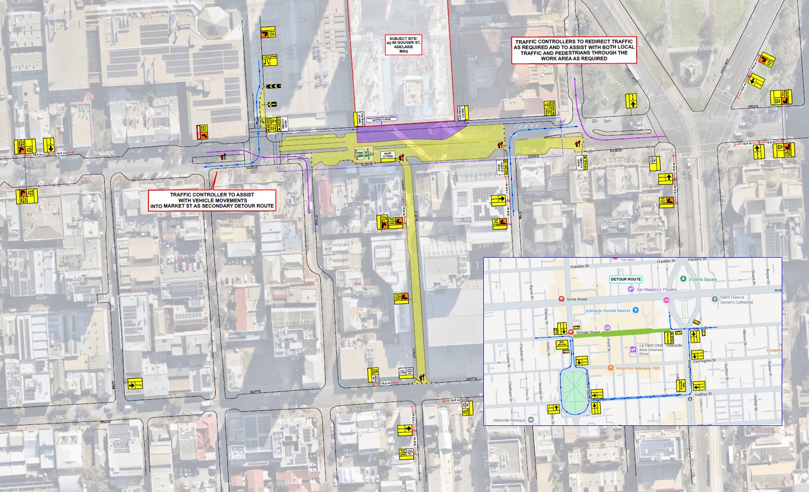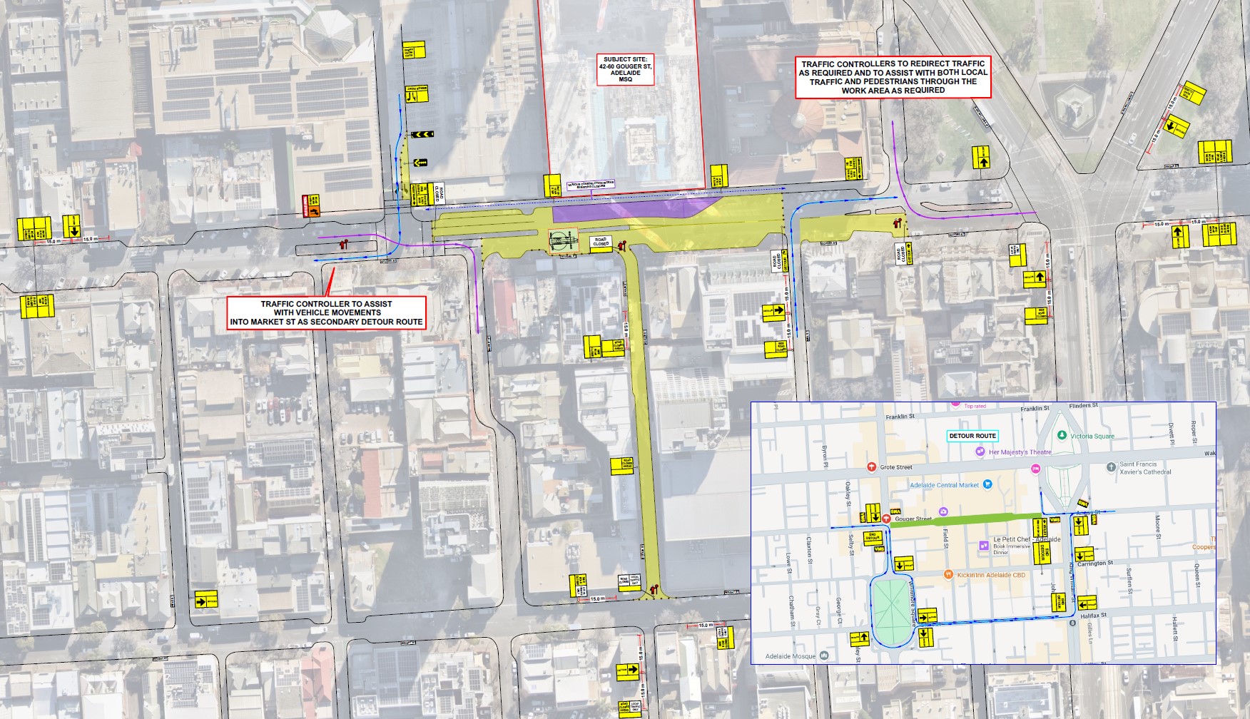 The road closure of Gouger Street between Mill Street and Market Street, Adelaide to facilitate the removal of a tower crane.